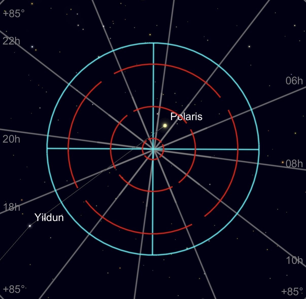 So what has this got to do with polar aligning using the celestial pole opposite to the hemisphere you are in. If you think about it, because we are just trying to align the trackers axis with the earths axis we can (as long as the tracker is itself is pointing in the right direction i.e. towards the local celestial pole) use the opposite celestial pole in exactly the same manner.